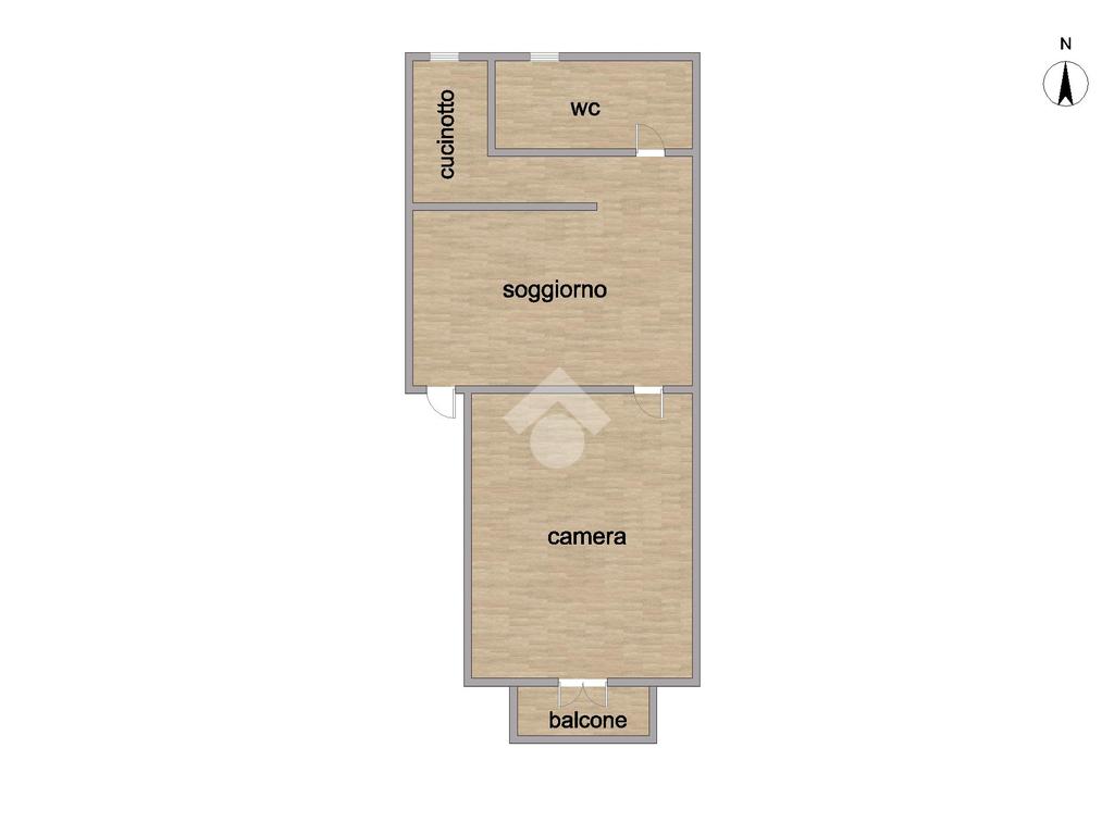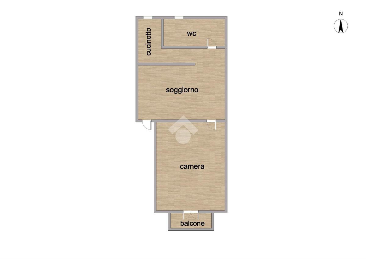 L’ingresso si apre su un accogliente soggiorno, seguito da un pratico cucinotto separato. La zona notte è composta da una camera da letto ben esposta, che garantisce una buona luminosità naturale, mentre il servizio, finestrato e dotato di doccia, assicura funzionalità e comfort.